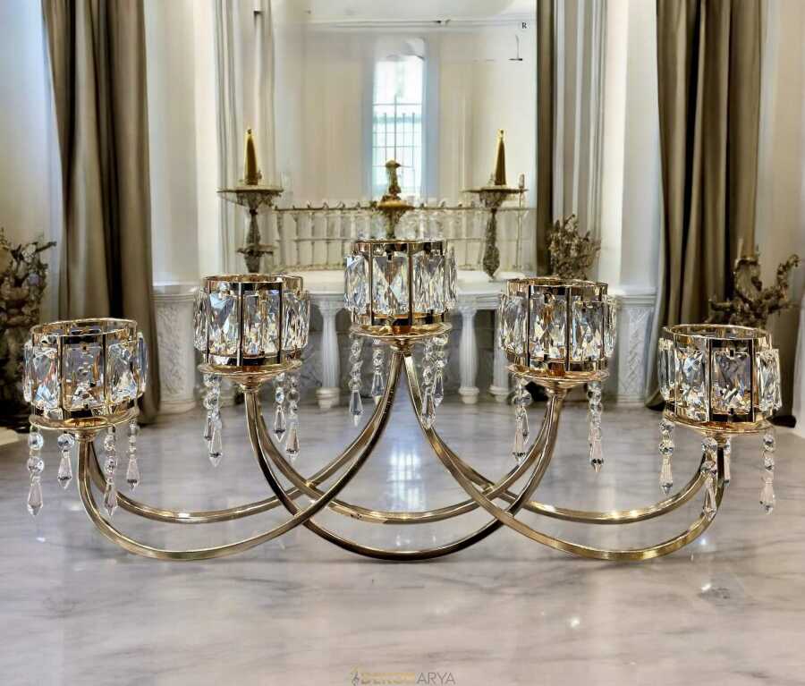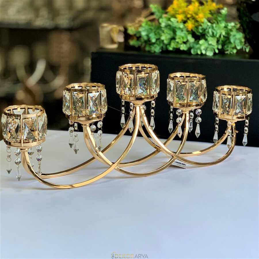 Mumluk ve şamdan modellerinde uzun ve yatay modelleri daha çok tercih ediyorsanız gümüş ve gold seçenekleriyle kristal taşlı yatay şamdanlarımıza kesinlikle göz atmalısınız. İster sehpa üzerinde ister konsolda isterseniz de masalarınızda sergileyebileceğiniz yatay şamdanlar DekorArya'da! Sarkıt kristalleri, kristal yapılı taşları ve yatay formuyla aydınlatmada mum tercih edenler için çok kullanışlı ve dekoratif.