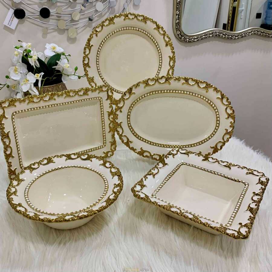 Serenity Ayaklı Oval Beyaz Gold Sunumluk