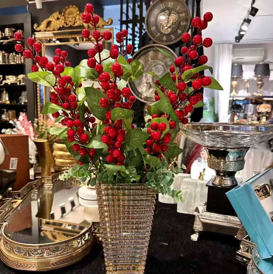 Kışın simgesi kırmızı kokina dallarıyla yaşam alanlarına zarif bir dokunuş katın.6 adet yapay kokina dalından oluşan bu dolgun demet, yılbaşı süslemelerinde, vazolarda veya dekoratif aranjmanlarda kullanılabilir.Gerçek dokulu yaprakları ve parlak kırmızı meyveleriyle uzun ömürlü, dökülmeyen ve formunu koruyan bir görünüm sunar.