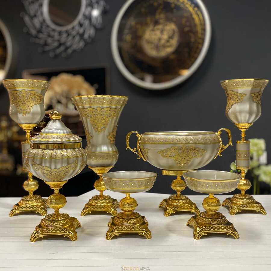 Napoli 7 Parça Salon Konsol Aksesuar Seti, salonunuzun estetiğini zirveye taşıyan muhteşem bir seçenektir. Bu zarif set, salonlarınızı ve yaşam alanlarınızı anında daha çekici hale getirmek için tasarlanmıştır.