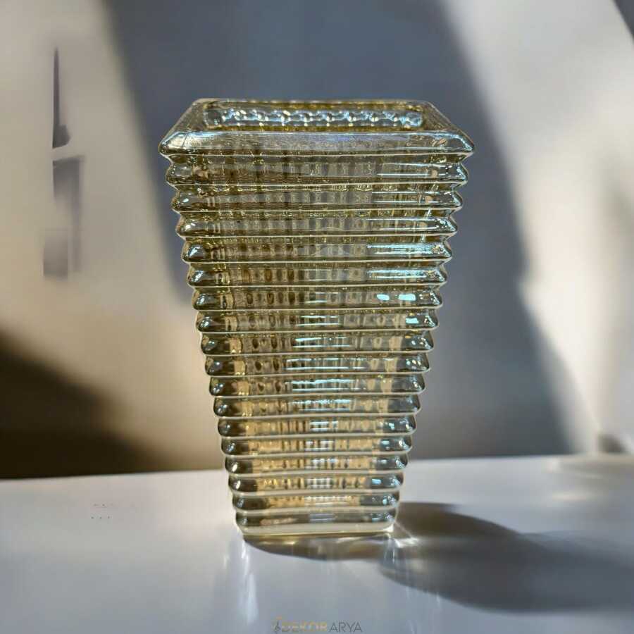 Doğal amber tonlarının sıcak ışıltısını yansıtan Amber Glow Küçük Boy Cam Vazo, katmanlı tasarımıyla ışığı her açıdan farklı şekilde kırarak mekâna zarif bir atmosfer katar.