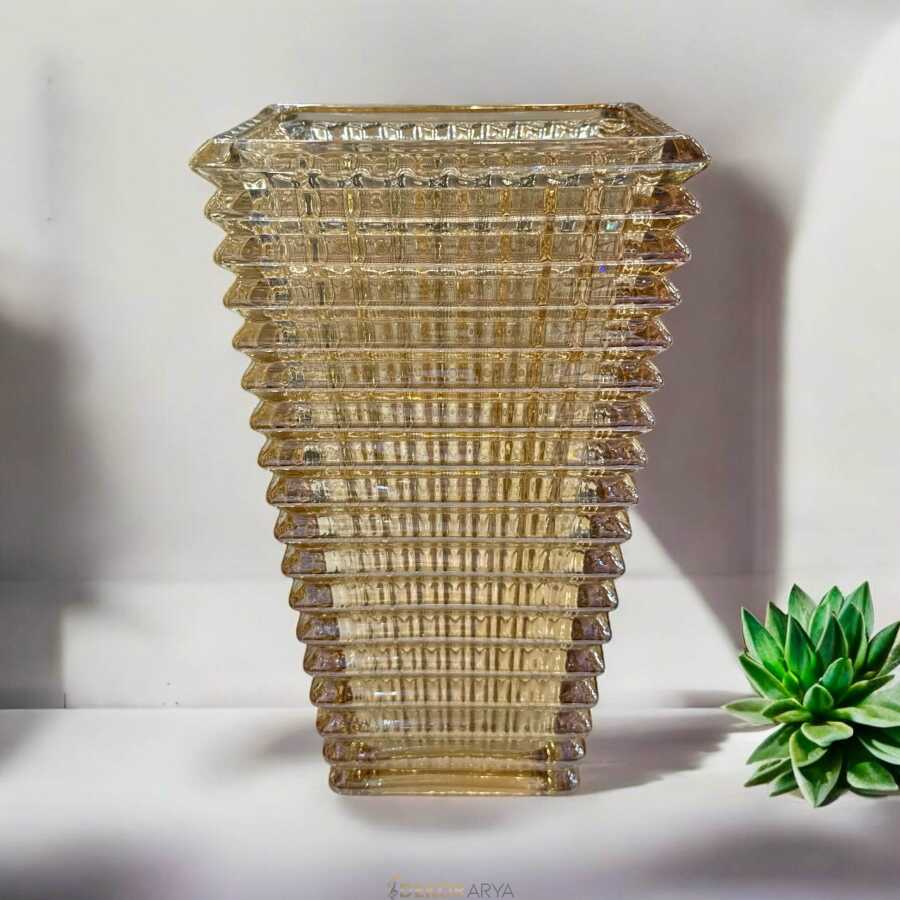 Işığın dansını en şık haliyle yansıtan Amber Işıltı Vazo, bal renginin sıcak tonlarıyla yaşam alanlarına sofistike bir dokunuş katar. Katmanlı cam yüzeyi sayesinde hem dekoratif obje hem de şık bir çiçeklik olarak kullanılabilir.