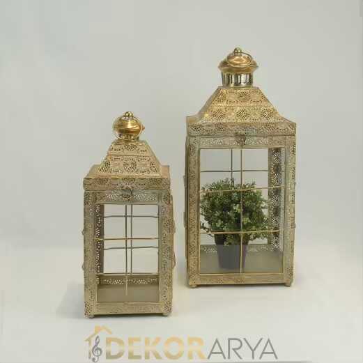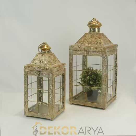 Eski sokak lambalarının o huzurlu akşamlarını anımsatan bu ikili fener, ince metal işçiliği ve cam panelleriyle ışığı yumuşatarak evinize nostaljik bir dokunuş getirir. Her penceresi, ışıkla birlikte canlanan küçük birer anı sahnesi sunar.