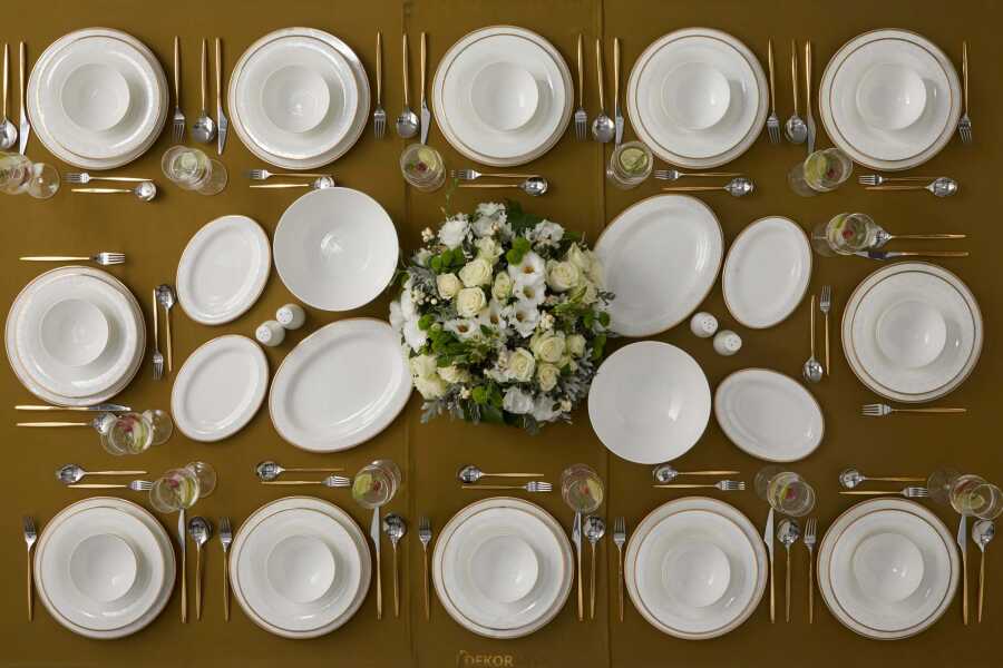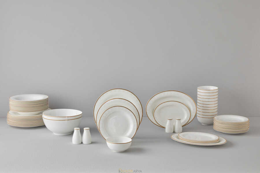 Zarafet ve lüksün mükemmel birleşimi! Yepyeni 12 kişilik 60 parça porselen yemek takımımız, Avrupa monarşilerinin ihtişamından ilham alarak tasarlandı. Bu benzersiz takım, yaldız çizgilerle süslenmiş, her ayrıntısıyla zarif bir eserdir.