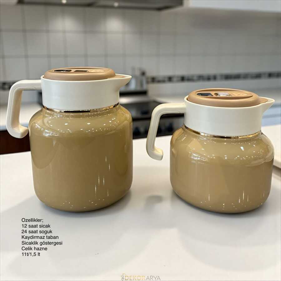 Kaydırmaz tabanı güvenli kullanım sunarken, sıcaklık göstergesi içeceğinizin ideal kıvamda kalmasını sağlar. 1 L ve 1,5 L kapasiteli termoslar, ister günlük kullanım ister kalabalık misafir sofraları için mükemmel bir seçimdir.