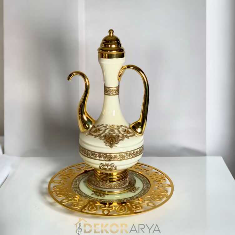 Gelince Haber VerValide Sultan Krem Gold Dekoratif İbrik Seti, zarafet ve gücü bir araya getiren özel bir salon dekor ürünüdür.