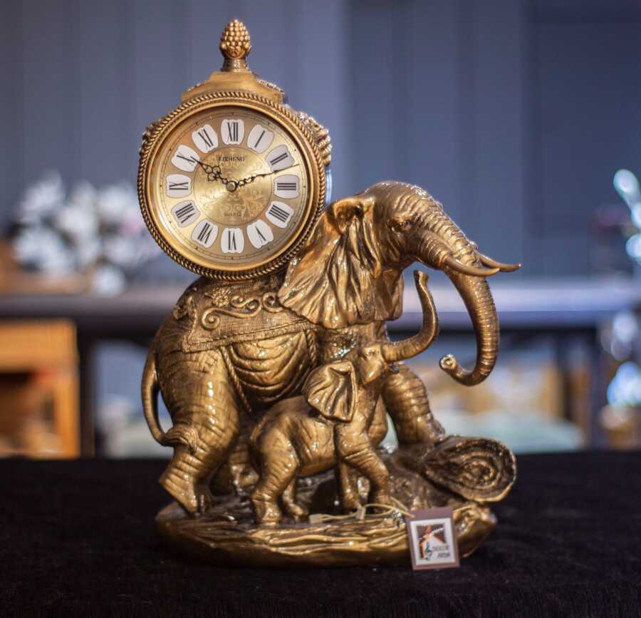 Fil Figürlü Masa Saati ile evinize şıklık katın.Poliüretan malzemeden üretilmiştir.Ürün Ölçüleri : 44*33 cm