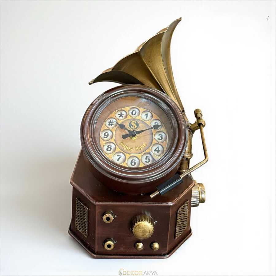 Nostaljik tasarımıyla dikkat çeken Gramofon Tasarımlı Dekoratif Masa Saati, retro tarzı sevenler için hem işlevsel hem de estetik bir seçenektir. 30×35 cm ölçülerindeki bu masa saati, detaylı gramofon formu ve antik görünümlü kadranıyla koleksiyon değeri taşır. Ev veya ofis dekorasyonunda vintage bir atmosfer yaratırken zamanı da şık bir şekilde gösterir. Dayanıklı malzemesi sayesinde uzun yıllar kullanım için uygundur. Özel tasarımıyla müzik ve nostalji tutkunları için eşsiz bir dekoratif objedir.