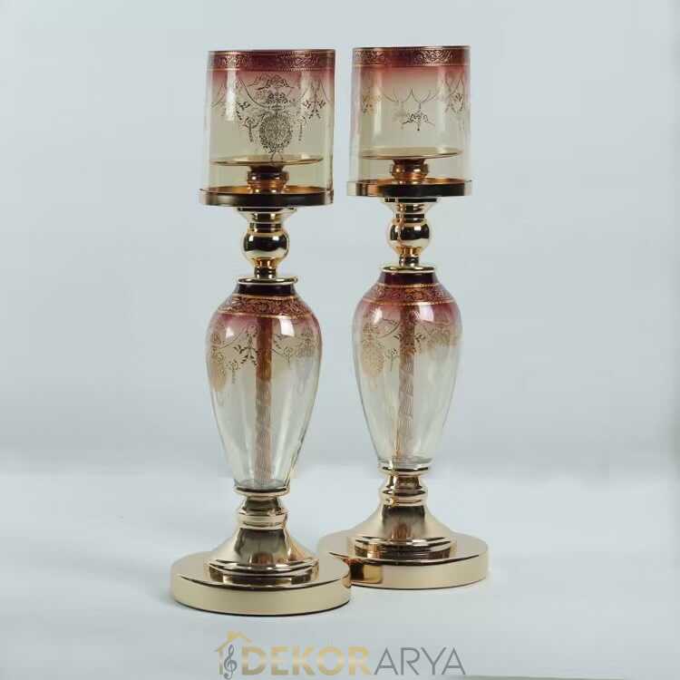Altın işlemeli detaylar, özel cam yüzey üzerinde ışığı büyüleyici bir şekilde yansıtarak bulunduğu ortama sıcak ve lüks bir atmosfer kazandırır.