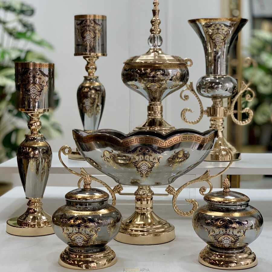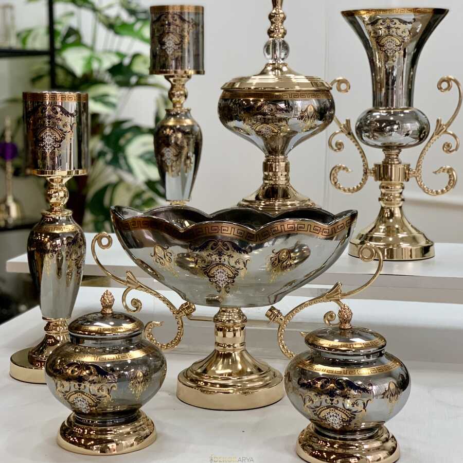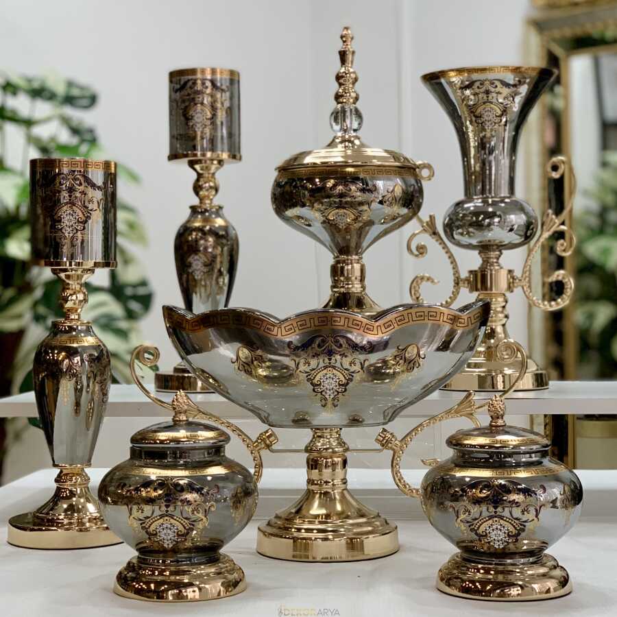 Ayna parlaklığındaki yüzeyiyle ışığı en saf haliyle yansıtan Imperial Mirror Gold, ihtişamı sevenlerin gözdesidir. Bu 7 parçalık salon aksesuar seti, yüksek parlaklıktaki gold yüzeyiyle salonlara, konsollara ve vitrinlere zarafet dolu bir parıltı kazandırır.