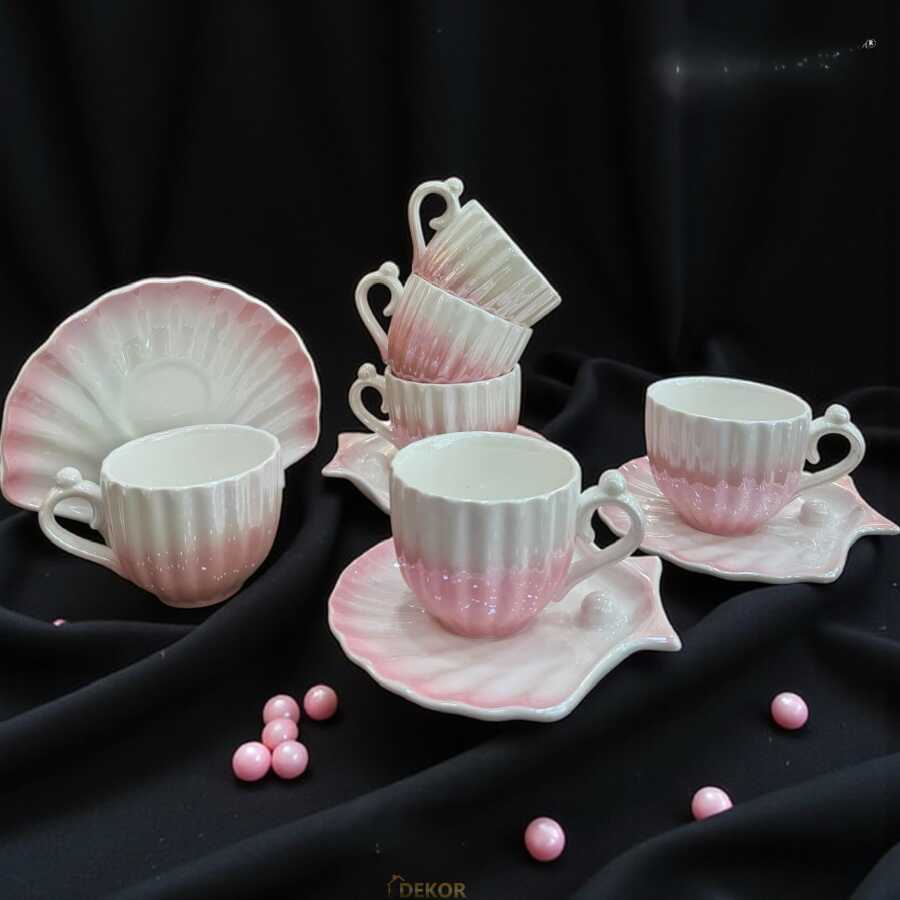 Kahve keyfinize zarafet katan Pearl İnci Türk Kahve Fincan Takımı, ışıltılı yüzeyi ve istiridye formundaki tabak tasarımıyla farklı bir şıklık sunar. Fincan sapındaki inci detayı, takımı benzersiz kılar. Üç farklı renk alternatifiyle (sedef, altın yansımalı ve inci beyazı) her zevke hitap eder.