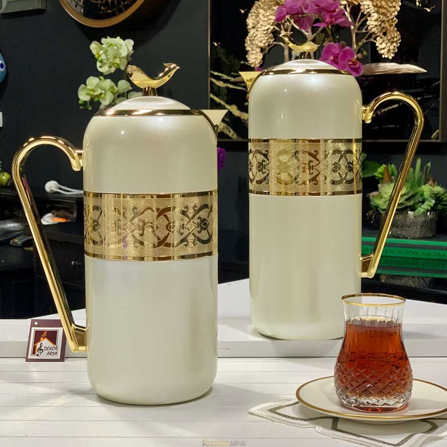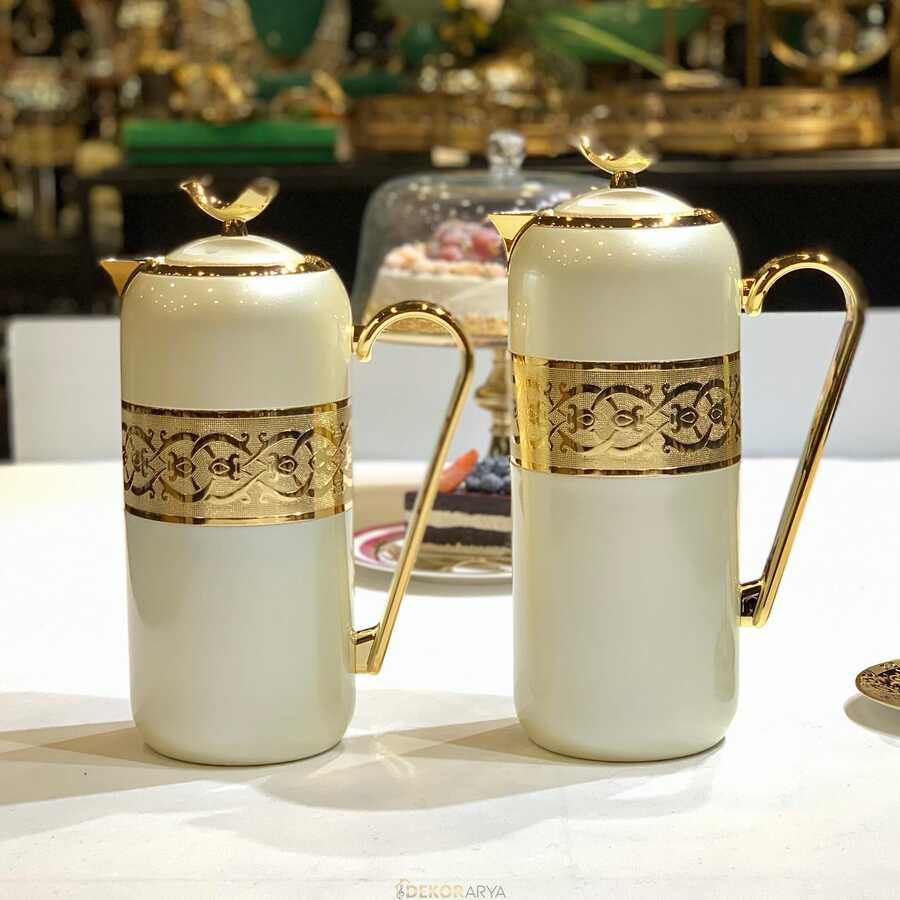 Lüks Termos 2'li Set Yassı İnci Beyaz Gold Termos ile sofranıza şıklık katın!