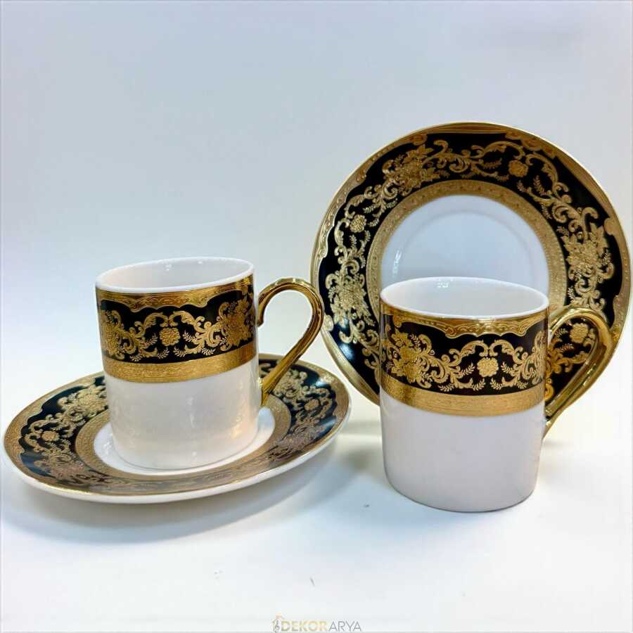 Zarafeti ve ihtişamı bir araya getiren Majestic kahve fincanı seti, siyahın asaletini altın yaldızın göz alıcı ışıltısıyla buluşturuyor.
