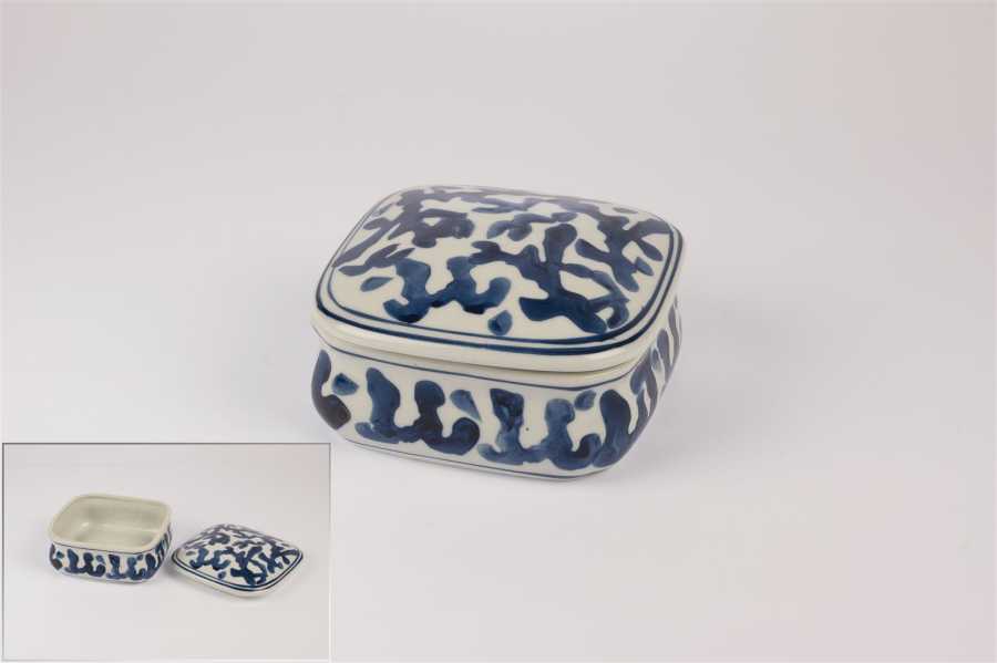 Mavi Beyaz Kare Seramik Kutu 13x6cm