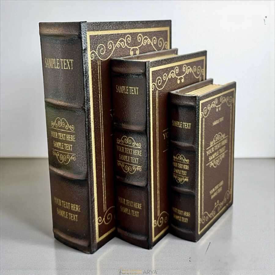 Zamansız bir şıklık: Kahve ve gold tonlarının asil uyumuyla tasarlanan Regal Brown kitap kutu seti, klasik kütüphane havasını yaşam alanlarınıza taşır.