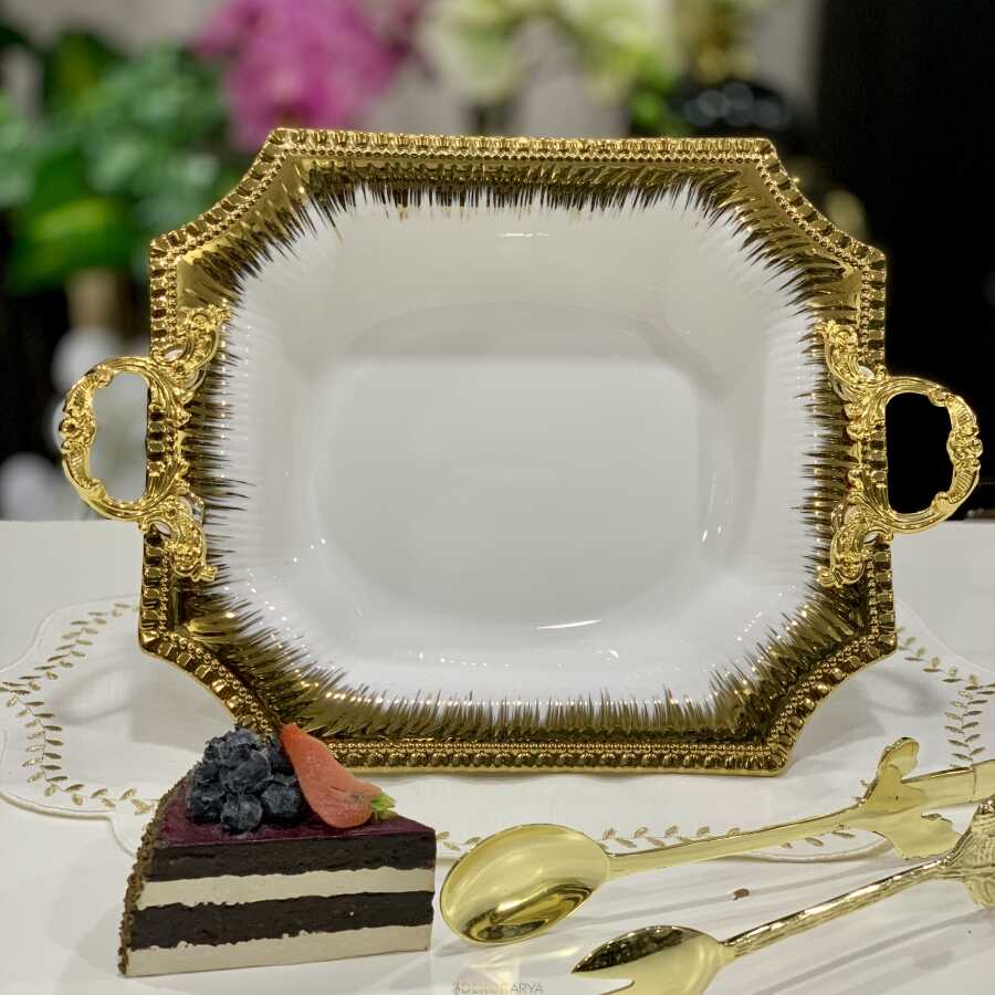 Serenity Metal Ayaklı Sunum Tabak, zarafet ve fonksiyonu mükemmel bir dengeyle bir araya getirir. Üstün kaliteli porselen malzemesi, her türlü sunumu daha da özel hale getirirken, metal ayaklar ise tabağın yüksekliğini artırarak sunumunuzu göz alıcı bir şekilde sergiler. Bu şık ve modern tabak, her türlü yemeği veya atıştırmalığı sunarken masanıza sofistike bir dokunuş katar. Özel tasarımıyla dikkat çeken Serenity, lüks bir atmosfer yaratmak isteyenler için ideal bir seçimdir. Hem ev kullanımı hem de restoran ve otel gibi ticari alanlarda mükemmel bir sunum deneyimi sunar. Serenity Metal Ayaklı Sunum Tabak ile yemeğinizi veya atıştırmalığınızı sunarken, kalitenin ve şıklığın keyfini çıkarın.