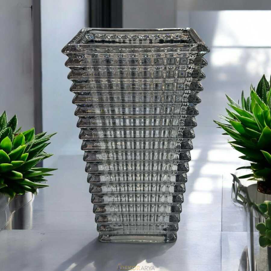 Silver Glow Büyük Boy Cam Vazo, gümüş tonlarının zarif ışıltısı ve katmanlı cam yapısıyla yaşam alanlarına modern bir atmosfer katar.