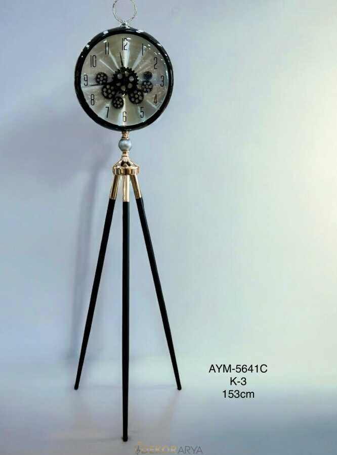 Siyah ve gold uyumuyla tasarlanan 153 cm tripod ayaklı dekoratif saat; modern çizgisi ve mekanizmalı iç tasarımıyla öne çıkar. Tripod ayaklı formu sayesinde yüksek ve zarif bir duruş sergiler. Hem klasik hem de modern salon, ofis veya giriş dekorasyonlarında şıklık ve prestij katan bu özel tasarım; gold detaylarıyla mekânınıza lüks bir dokunuş sunar.