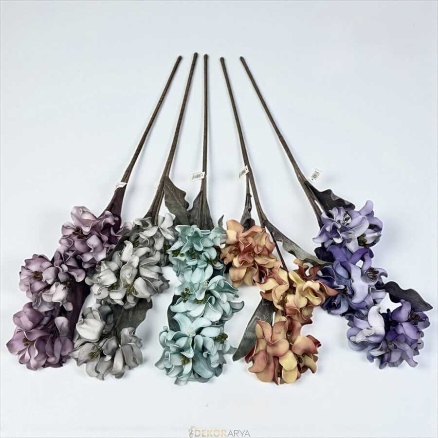 Modern hatları ve kıvrımlı çiçek formuyla öne çıkan yapay lilyum dalları, iç mekân dekorasyonuna zarif bir sanatsallık katar. Pastel renk tonlarıyla salon, ofis ve vitrin dekorlarında etkileyici bir görünüm sunar.Ölçü: 95 Cm
